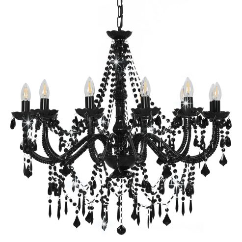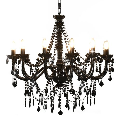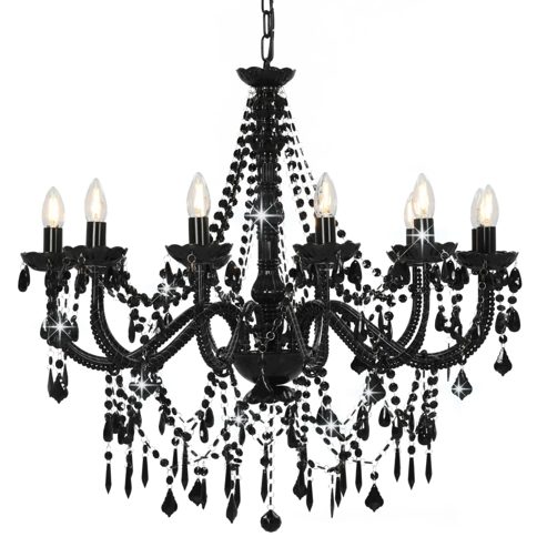 vidaXL Kronleuchter mit Perlen Schwarz 12 × E14-Fassungen