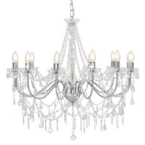vidaXL Kronleuchter mit Perlen Silbern 12 x E14-Fassungen