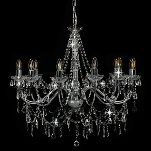 Mit einem extravaganten Design wird dieser ausgefallene Kronleuchter mit Kristallperlen sicherlich ein kühnes optisches Statement setzen und ein Blickfang in Ihrer Wohnungseinrichtung sein. Sie ist sowohl für den privaten als auch für den gewerblichen Gebrauch geeignet. Der kerzenartigen Lampensockel und die Tröpfchen verleihen dem Ganzen einen Hauch von antikem Charme und sorgen für schönes Licht. Sie können E14-Glühbirnen mit verschiedenen Lichtfarben auswählen, um eine Atmosphäre der Entspannung und Erholsamkeit zu schaffen. Bitte beachten Sie, dass die Leuchtmittel nicht im Lieferumfang enthalten sind. Mit den inbegriffenen Montagematerialien können Sie die Hängelampe einfach und sicher montieren und sichern. ** Farbe: Silbern (Lampensockel) + Transparent (Perlen) ** Abmessungen: 80 x 75 cm (Durchmesser x H) ** Material: Metall (Rahmen) + Acryl (Perlen) ** Stromversorgung: 230 V ** Maximale Lampenleistung: 40 W ** Lampenfassung: E14 ** Mit 12 Lampensockeln ** Leuchtmittel sind nicht im Lieferumfang enthalten Dieses Gerät ist nicht dafür bestimmt, von Personen (einschließlich Kindern) mit eingeschränkten physischen, sensorischen oder geistigen Fähigkeiten oder mangelnder Erfahrung und mangelndem Wissen benutzt zu werden, es sei denn, sie werden von einer für ihre Sicherheit verantwortlichen Person beaufsichtigt oder in der Benutzung des Geräts unterwiesen. Dieses Produkt ist kein Spielzeug. Erlaube Kindern nicht, mit dem Gerät zu spielen.