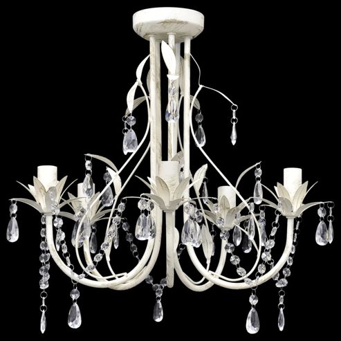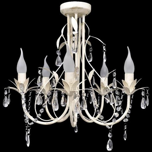 Dieser prachtvolle Kristall-Kronleuchter, der über 5 elegante Lampenfassungen verfügt, macht überall eine gute Figur, egal ob im Wohnzimmer, Essbereich oder in der Küche. Dank des königlichen Kristall-Designs ist dieser atemberaubende Kronleuchter sicherlich ein Blickfang zum Beleuchten Ihres Esszimmers, Wohnzimmers, der Eingangshalle und vieles mehr! Die hochwertigen Kristall-Kugeln mit hoher Klarheit verleihen bei Lichteinwirkung (sogar vor fremden Lichtquellen) ein prächtiges Farbenspiel in Spektralfarben. Mit diesem schönen Kronleuchter werden Sie in der Lage, Ihr Haus auf luxuriöse Art und Weise zu dekorieren. Notiz: Leuchtmittel sind im Lieferumfang nicht enthalten. ** Voltage: 230 V~ ** Anzahl der Lampenfassungen: 5 ** Haltbarer Metallrahmen ** Material der glänzenden Kristalls: Acryl ** Maße der Lampe: 46 x 42,5 cm (Φ x H) ** Leuchtmittel: 5 x E14,Max. 40 W(nicht mitgeliefert) ** Farbe: antikweiß Dieses Gerät ist nicht dafür bestimmt, von Personen (einschließlich Kindern) mit eingeschränkten physischen, sensorischen oder geistigen Fähigkeiten oder mangelnder Erfahrung und mangelndem Wissen benutzt zu werden, es sei denn, sie werden von einer für ihre Sicherheit verantwortlichen Person beaufsichtigt oder in der Benutzung des Geräts unterwiesen. Dieses Produkt ist kein Spielzeug. Erlaube Kindern nicht, mit dem Gerät zu spielen.