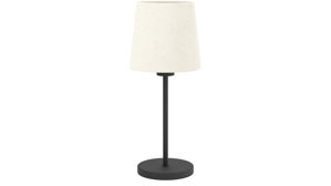 weißer Stoff-Lampenschirm kombiniert mit schwarzem Stahl-Fuß