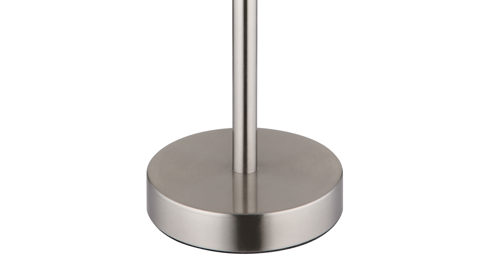 weißer Textil-Lampenschirm und matt nickelfarbenes Metall