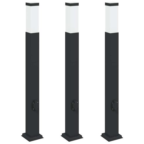vidaXL Pollerleuchten mit Steckdose 3 Stk. 80 cm Schwarz IP44