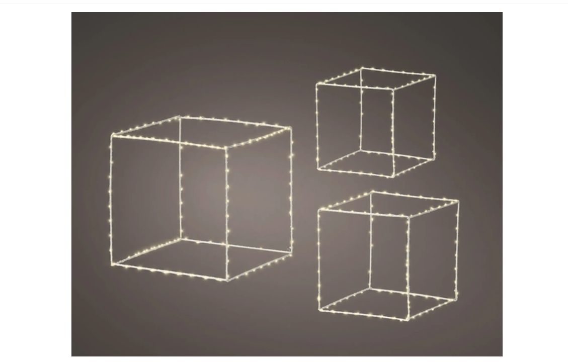 Verwandeln Sie Ihr Zuhause, Ihren Garten oder Ihre Feier mit dem Kaemingk Lumineo LED Würfel 3er-Set in eine stimmungsvolle Lichtoase. Das Set umfasst drei LED-Würfel in verschiedenen Größen mit 120, 150 und 180 LEDs und sorgt dank warmweißem Licht für eine gemütliche und elegante Atmosphäre. Ideal als Wohnzimmerbeleuchtung, Gartenbeleuchtung, Partydeko oder Eventlicht – die Würfel sind flexibel einsetzbar und setzen überall dekorative Akzente.