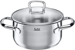Im zeitlosen Design präsentiert sich dieses hochwertige Topfset aus dem Hause Silit. Das Modell Toskana ist komplett aus Edelstahl 18/10 gefertigt. Das Set ist besonders zum wasserarmen, energiesparenden Kochen geeignet. Die Deckel sind aus Glas, so läßt sich der Kochfortschrift schnell und einfach überwachen. Backofenfeste, ergonomisch geformte Griffe erleichtern die Handhabung. Das Set beinhaltet insgesamt vier Kochtöpfe, sowie eine Stielkasserolle, einen Milchtopf sowie zwei Pfannen und einen Siebeinsatz. Als Erstaustattung läßt es keine Wünsche offen.