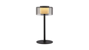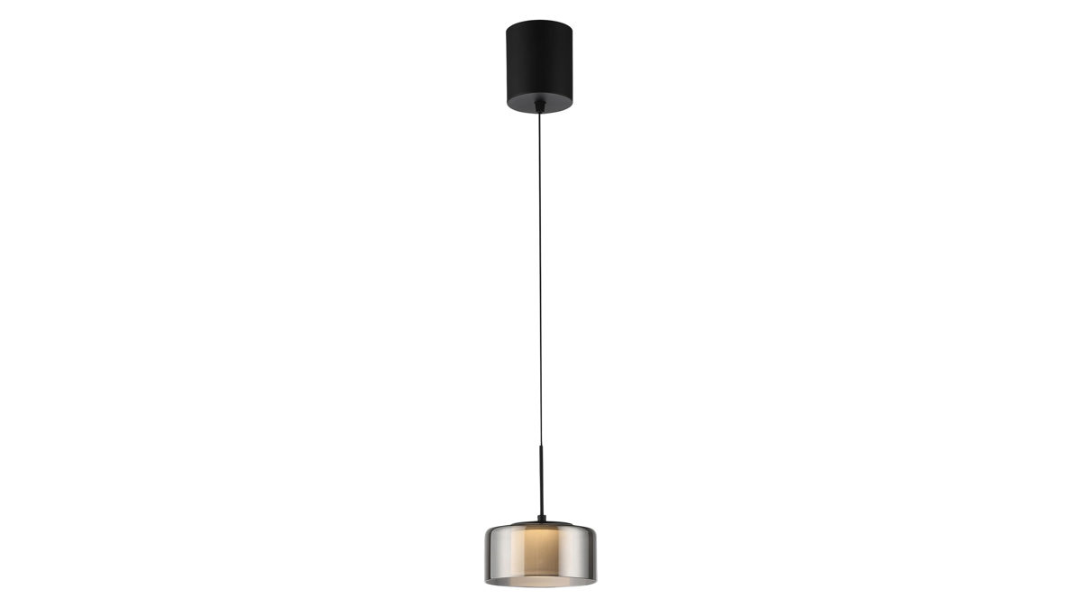 matt schwarzes Metall kombiniert mit einem runden Lampenschirm aus Rauchglas