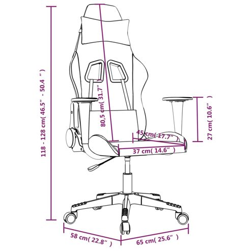 Genieße eine komfortable Sitzposition beim Spielen auf diesem einzigartigen Gaming-Stuhl und verbessere dein Spielerlebnis! Strapazierfähiger Stoff: Der Stoff weist eine schlichte und saubere Optik auf und ist außerdem atmungsaktiv und langlebig.Massagefunktion: Der Massagepunkt im Taillenbereich bekämpft Müdigkeit effektiv und sorgt für mehr Entspannung während der Arbeit.Verstellbare Rückenlehne und Höhe: Der Sessel ist mit Liegefunktion ausgestattet, sodass du Rückenlehne je nach Belieben einstellen kannst. Verwende den Hebel, um die Sitzhöhe nach Bedarf zu verstellen.Praktisches Design: Der Stuhl lässt sich auch um 360 Grad drehen, um eine größere Bewegungsfreiheit zu ermöglichen. Darüber hinaus lässt sich der Stuhl dank Rollen bequem umher verschieben.Robustes und stabiles Gestell: Die Gestelle aus Metall und Sperrholz sorgen für Robustheit und Stabilität. Hinweis:Jedes Produkt wird mit einer Montageanleitung in der Verpackung für eine einfache Montage geliefert.Das Produkt verfügt über einen USB-Anschluss, aber die zertifizierte 5-V-USB-Stromquelle ist nicht im Lieferumfang enthalten. ** Farbe: Schwarz und Hellgrau ** Material: Stoff (100% Polyester), Metall, Sperrholz, Kunststoff ** Füllung: Schaumstoff ** Gesamtabmessungen: 65 x 58 x (118-128) cm (B x T x H) ** Abmessungen in Liegeposition: 65 x 98 x (104-114) cm (B x T x H) ** Sitzfläche-Größe: 37 x 45 cm (B x T) ** Sitzhöhe vom Boden: 40-50 cm ** Armlehnenhöhe vom Boden: 65-75 cm ** Eingangsspannung: DC 5V ** Eingangsstrom: 2A Achte auf die Gefahr von offenem Feuer und anderen starken Wärmequellen in der Nähe des Produkts. Maximal 110 kg pro Sitz. Dieses Produkt wird mit 5 V Gleichstrom betrieben, aber die zertifizierte 5-V-USB-Stromquelle ist nicht im Lieferumfang enthalten. Eine höhere Spannung kann zu einer Überhitzung führen und das Gerät beschädigen sowie das Risiko einer Überhitzung und eines Brandes bergen.