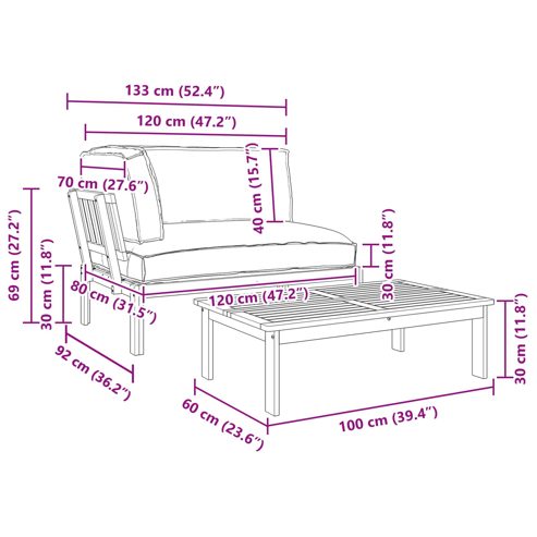 Dieses coole Sofaset vereint modernes Design mit Funktionalität und besteht aus massivem Akazienholz und Oxford-Gewebe. Es ist ideal, um deinen Garten oder deine Terrasse aufzuwerten. Mit seinen schlanken, minimalistischen Linien verleiht es diversen Außendekoren einen besonderen Charme und bietet eine stylische, robuste Sitzgelegenheit. Das kreative Design ermöglicht verschiedene Anordnungen und passt sich jeder Situation an – perfekt für Gartenpartys oder ruhige Momente in der Natur. Wetterfeste Materialien Hergestellt aus massivem Akazienholz, bekannt für seine Langlebigkeit und Wetterresistenz. Die natürliche Holzmaserung kommt durch die geölte Oberfläche gut zur Geltung und bietet sowohl Schutz als auch Eindruck. Zusammen mit Kissen aus Oxford-Gewebe, die dem Wetter standhalten, bleibt das Set in top Zustand und bietet Komfort und Stil im Freien. Modulare Anordnung Das modulare Design erlaubt es dir, das Sofaset ganz unkompliziert umzustellen und verschiedene Sitzanordnungen zu erstellen. Diese Flexibilität macht es zu einem dynamischen Möbelstück, das beim Entspannen, Essen oder Feiern alles mitmacht und alle Bedürfnisse erfüllt. Robuste Bauweise Mit stabilen, quadratischen Beinen aus massivem Akazienholz sorgt dieses Set für hohe Stabilität und Stärke. Jede Komponente sorgt für eine sichere Basis und sorgt dafür, dass es nicht wackelt. Die durchdachte Materialkombination garantiert eine lange Haltbarkeit und maximales Vergnügen. Moderner Look Das schlichte Design mit klaren Linien und wenig Schnickschnack passt perfekt in moderne Außenbereiche. Die Eleganz harmoniert mit verschiedenen Landschaften, von urbanen Balkonen bis zu rustikalen Gärten, und hält das Gleichgewicht zwischen Natur und Architektur. Diese anspruchsvolle Optik bringt einen Hauch von Eleganz und Praktikabilität in jede Umgebung. Einfache Pflege Mit Kissen, die du einfach mit einem trockenen Tuch abwischen kannst. Vermeide direkte Sonneneinstrahlung und aggressive Chemikalien, damit die Qualität von Stoff und Holz erhalten bleibt. So bleibt das Set einladend und praktisch, was seinen Reiz als Outdoor-Möbelstück verstärkt. ** Farbe: Taupe ** Material: Massivholz Akazie ** Oberfläche: Geölt ** Gesamtabmessungen: 133 x 92 x 69 cm (L x B x H) ** Gewicht: 28,1 kg ** Modular ** Sitzbereich: 120 x 80 cm (B x T) ** Max. Gewicht: 110 kg ** Nur für den Außenbereich ** Lieferumfang: ** 1 x Ecksofa: 133 x 92 x 69 cm (LxBxH) ** 1 x Tisch: 100 x 60 x 30 cm (LxBxH) ** 1 x Outdoor-Kissen: 120 x 80 x 12 cm (LxBxH) ** 1 x Outdoor-Kissen: 120 x 40 x 12 cm (LxBxH) ** 1 x Outdoor-Kissen: 70 x 40 x 12 cm (LxBxH) ** Montage erforderlich: Ja Maximal 110 kg pro Sitzplatz.