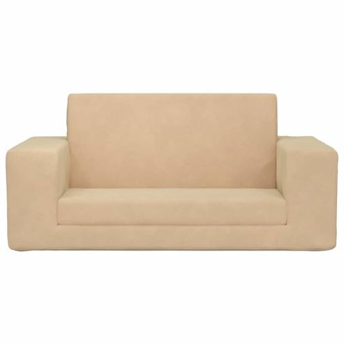 vidaXL Kinder-Schlafsofa 2-Sitzer Creme Weicher Plüsch