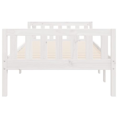 In diesem Kinderbett werden die Kleinen einen besseren, erholsameren Schlaf genießen! Das Bett ist eine wertvolle Ergänzung für jedes Kinderzimmer.Stabiles und langlebiges Gestell: Massives Kiefernholz ist für seine Stärke und Haltbarkeit bekannt. Seine gerade Maserung und die charakteristischen Aststellen tragen zu seinem rustikalen Charme bei.Lattenrost für optimale Unterstützung: Der Bettrahmen ist mit einem Lattenrost ausgestattet, der deine Matratze stützt und atmungsaktiv hält.Stabile und haltbare Beine: Dieses Bett wird von starken Beinen getragen, die für Stabilität, Sicherheit und Festigkeit sorgen.Gut zu wissen:Die Lieferung beinhaltet nur einen Bettrahmen. Die Matratze ist nicht enthalten. In unserem Shop finden Sie auch passende Matratzen. ** Farbe: Weiß ** Material: Massives Kiefernholz ** Abmessungen: 205,5 x 85,5 x 57 cm (L x B x H) ** Max. Belastbarkeit (mit Matratze): 100 kg ** Geeignete Matratzengröße: 80 x 200 cm (B x L) (Matratze ist nicht im Lieferumfang enthalten) ** Mit Lattenrost ** Zusammenbau erforderlich: Ja
