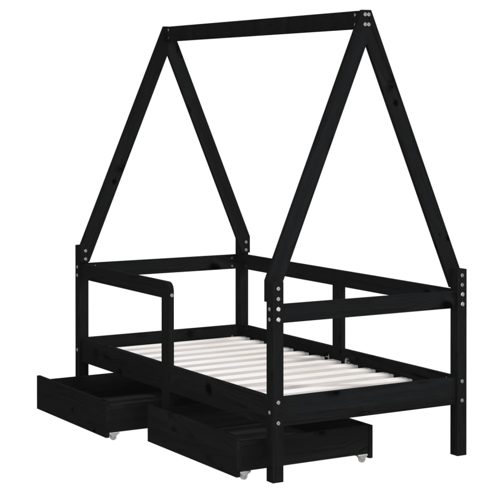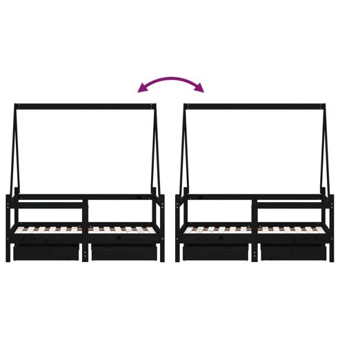 vidaXL Kinderbett mit Schubladen Schwarz 70x140 cm Massivholz Kiefer