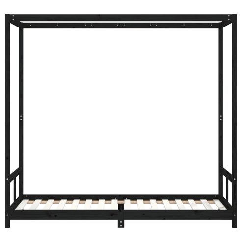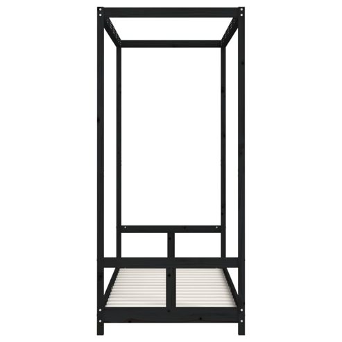 Mit diesem fantastischen Kinderbett aus Holz bietest du deinen Kleinen einen eigenen lustigen Platz! Massives Kiefernholz: Das Kinderbett ist aus massivem Kiefernholz gefertigt. Massives Kiefernholz ist ein wunderschönes Naturmaterial. Kiefernholz weist eine gerade Maserung auf und die Aststellen verleihen dem Material seine charakteristische, rustikale Optik.Robuste Latten: Das Kinderbett ist mit Holzlatten versehen, die für einen festen Halt, Belüftung und Stabilität sorgen.Himmelbett: Dieses Kleinkinderbett ist mit einem Baldachin-Bettgestell ausgestattet, an dem du Bettvorhänge aufhängen kannst, um Privatsphäre für dein Kind zu schaffen.Durchdachtes Design: Dank der geringen Höhe des Einzelbettes können Kinder leicht ins Bett ein- und aussteigen. ** Farbe: Schwarz ** Material: Massives Kiefernholz ** Gesamtabmessungen: 205,5 x 85,5 x 190 cm (L x B x H) ** Geeignete Matratzengröße: 80 x 200 cm (B x L) (Matratze ist nicht im Lieferumfang enthalten) ** Geeignet für Kinder ab 4 Jahren ** Zusammenbau erforderlich: Ja WARNUNG! Stelle dieses Kinderbett nicht in der Nähe von Wärmequellen, Fenstern und anderen Möbeln auf. WARNUNG! Benutze dieses Kinderbett nicht, wenn ein Teil kaputt ist, gerissen ist oder fehlt.