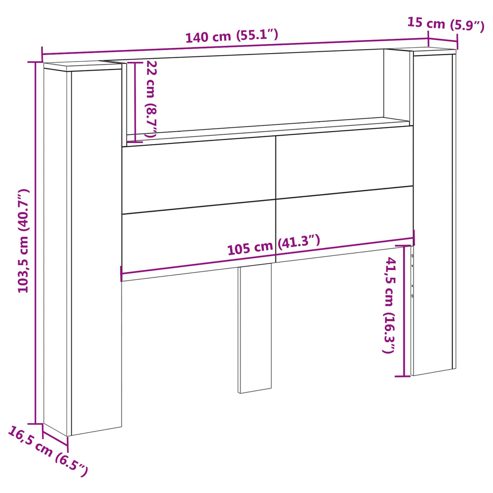 vidaXL Kopfteil-Schrank mit LED mit Regal Weiß 140 x 16,5 x 103,5 cm