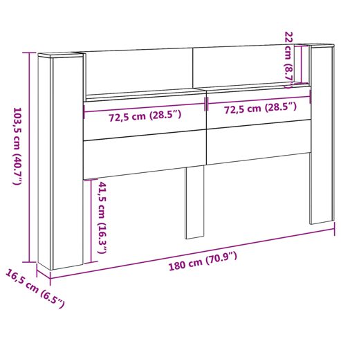 vidaXL Kopfteil-Schrank mit LED mit Regal Sonoma 180 x 16,5 x 103,5 cm