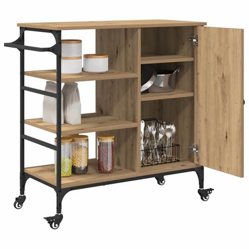 vidaXL Küchentrolley Artisan Eiche und Schwarz 87.5 x 38.5 x 84.5 cm