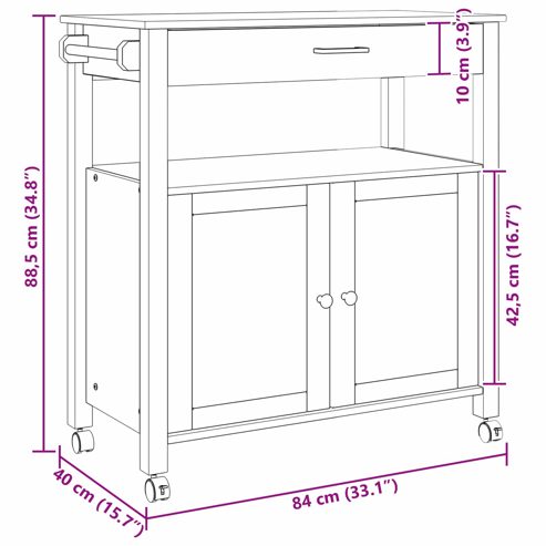 vidaXL Küchentrolley Uni Schwarz 84 x 40 x 88,5 cm