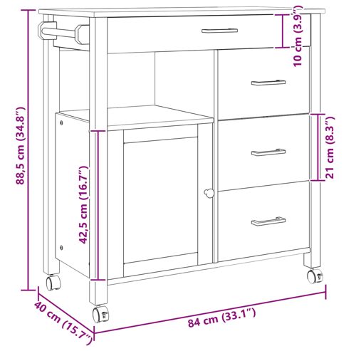 vidaXL Küchentrolley Uni Schwarz 84 x 40 x 88,5 cm