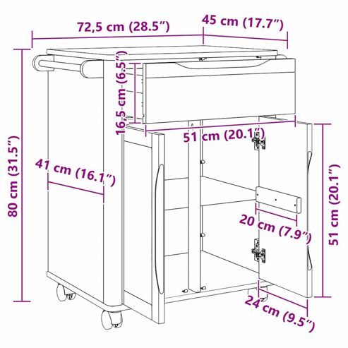 Dieser moderne Küchentrolley bringt einen Hauch von Stil und Funktionalität in jede Küche. Seine klaren Linien und das schlichte Design passen perfekt zu modernen Heimen und machen den Raum gleich schöner, während er auch nützlich ist. Hergestellt aus Massivholz Kiefer, hat dieser Trolley eine glatte, rechteckige Form, die handgefertigt ist, um zu deinem Einrichtungsstil zu passen. Perfekt für Leidenschaften in der Küche und Hobbyköche, fördert dieses Stück den Stil und die Effizienz in deinem Kochbereich. Top Verarbeitung: Aus Kiefernholz für lange Haltbarkeit gemacht, hält dieser Trolley den täglichen Küchenanwendungen stand. Das Holz hat eine tolle Maserung, die deiner Küche Wärme verleiht. Diese Materialwahl sorgt dafür, dass der Trolley auch bei häufigem Gebrauch stabil bleibt und verbindet Ästhetik und Funktionalität perfekt. Leichte Mobilität: Genieß die mühelose Bewegung mit den Rädern, die dem Trolley helfen, über verschiedene Bodenbeläge zu gleiten. Ob für eine Dinnerparty oder um die Küchenanordnung zu ändern, diese Funktion ermöglicht einen einfachen Transport, was in einem aktiven Umfeld echt praktisch ist. Die Räder lassen sich arretieren, um Stabilität zu gewährleisten, wenn der Trolley steht, sodass alles sicher bleibt. Smarte Stauraumgestaltung: Der Trolley hat viele Aufbewahrungsmöglichkeiten mit Fächern, die deine Küchenutensilien ordentlich verstauen. Die Regale bieten Platz für Geschirr, Utensilien oder kleine Geräte, während zusätzliche Schubladen einen praktischen Platz für Besteck oder Küchengeräte bieten. So maximierst du deinen Küchenraum und schaffst eine angenehme, aufgeräumte Umgebung. Vielseitige Anwendung: Für den Innenbereich gedacht, macht dieser Trolley in vielen Situationen Sinn – beim Kochen oder als tragbare Bar beim Feiern. Er passt sich deinen Bedürfnissen an und steigert deine Produktivität, egal was du machst. Dieses Talent macht ihn zu einem wertvollen Teil jeder Wohnung. Easy Pflege: Der Trolley muss nur ab und zu mit einem trockenen Tuch abgewischt werden, damit er sein gutes Aussehen behält. Vermeide scharfe Chemikalien und übermäßige Feuchtigkeit, um die natürliche Schönheit des Holzes zu bewahren. Mit einfachen Pflegehinweisen bleibt dein Trolley jahrelang stylish und funktionsfähig. ** Farbe: Wachsbraun ** Material: Massivholz Kiefer ** Gesamtabmessungen: 72,5 x 45 x 80 cm (L x B x H) ** Gewicht: 19,5 kg ** Langlebig ** Mühelos zu bewegen ** Nur für den Innenbereich ** Lieferumfang: ** 1 x Küchentrolley ** Montage erforderlich: Ja