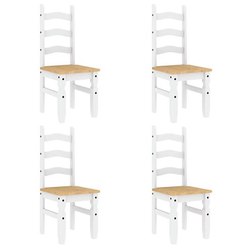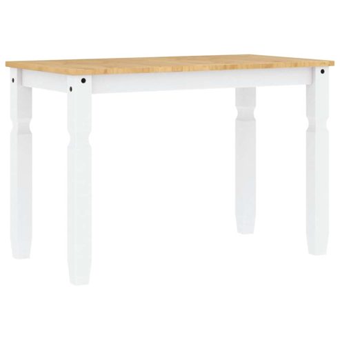 Schaffe mit dieser Essgruppe aus Holz einen gemütlichen und einladenden Ort, um deinen Tag zu beginnen oder zusammen mit der Familie eine großartige Mahlzeit zu genießen! Robust und stabil: Kiefernholz ist für seine Stärke und Haltbarkeit bekannt. Seine gerade Maserung und die charakteristischen Aststellen tragen zu seinem rustikalen Charme bei.Stabile Tischplatte: Dieser Esstisch verfügt über eine robuste Tischplatte, wodurch er sich ideal zum Servieren von Mahlzeiten, Snacks, Getränken und zur Präsentation deiner Lieblingsdekorationen eignet.Pflegeleicht: Dank ihrer glatten Oberfläche lässt sich die Essgruppe mit einem feuchten Tuch leicht reinigen und erfordert wenig Pflege.Breite Anwendungen: Das Esstischset hat ein minimalistisches Design und passt in jede Umgebung in deinem Haus. Es kann in deiner Küche, deinem Esszimmer usw. verwendet werden. ** Farbe: Weiß ** Material: Massives Kiefernholz mit Honigwachs-Finish ** Abmessungen des Tisches: 112 x 60 x 75 cm (L x B x H) ** Abmessungen des Stuhls: 42 x 47 x 107 cm (L x B x H) ** Max. Tragfähigkeit (pro Sitz): 110 kg ** Produktreihe: Panama ** Zusammenbau erforderlich: Ja ** Lieferung umfasst: ** 1 x Esstisch ** 4 x Stuhl Maximal 110 kg pro Sitzplatz.