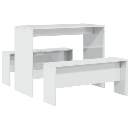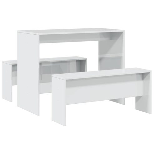 vidaXL 3-tlg. Esstisch und Bank Set Hochglanz-Weiß Holzwerkstoff