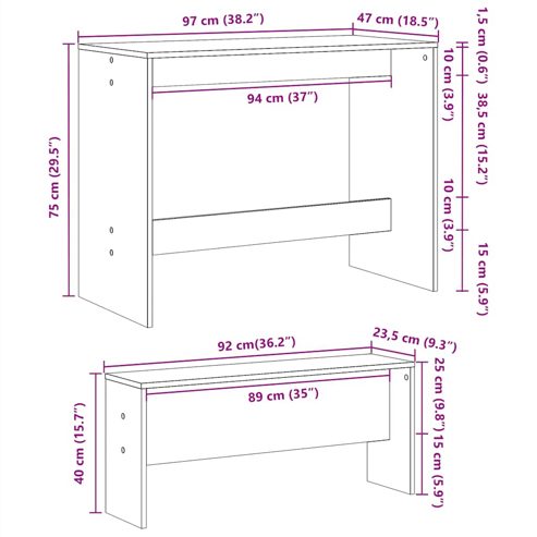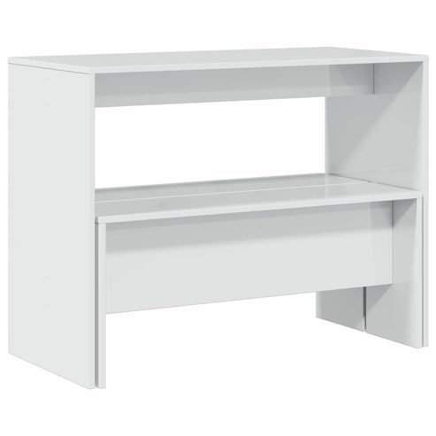 Schaffe mit dieser Essgruppe mit Bank einen gemütlichen und einladenden Ort, um den Tag zu beginnen oder mit der Familie eine großartige Mahlzeit zu genießen. Starkes und langlebiges Material: Holzwerkstoff ist ein langlebiges und robustes Material mit einer glatten Oberfläche, das gegen Feuchtigkeit, Verformung und Rissbildung beständig ist, wodurch es eine zuverlässigen Wahl für die Herstellung von Möbeln ist.Stabile Tischplatte: Dieser Esstisch verfügt über eine robuste Tischplatte, wodurch er sich ideal zum Servieren von Mahlzeiten, Snacks, Getränken und zur Präsentation deiner Lieblingsdekorationen eignet.Großzügige Sitzgelegenheiten: Dank der großzügigen Essbänke ist diese Essgruppe perfekt, um mit Familie und Freunden ein herrliches Festmahl zu genießen.Pflegeleicht: Dank ihrer glatten Oberfläche lässt sich die Essgruppe mit einem feuchten Tuch leicht reinigen und erfordert wenig Pflege. Achtung:Um ein Umkippen zu vermeiden, sollte dieses Produkt mit der mitgelieferten Wandhalterung gesichert werden. ** Farbe: Hochglanz-Weiß ** Material: Holzwerkstoff ** Abmessungen Tisch: 97 x 47 x 75 cm (L x B x H) ** Abmessungen Essbank: 92 x 23,5 x 40 cm (L x B x H) ** Max. Tragfähigkeit (pro Bank): 110 kg ** Zusammenbau erforderlich: Ja ** Lieferung umfasst: ** 1 x Esstisch ** 2 x Bank