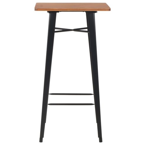 Dieses Bar-Set mit zeitgenössischem Design wird eine schicke Ergänzung zu Ihrer Küche oder Ihrem Esszimmer sein. Der Tischrahmen und die Hocker sind aus pulverbeschichtetem Stahl gefertigt, was sie sehr robust, langlebig und leicht mit einem feuchten Tuch zu reinigen macht. Zusätzlich bietet die massive Tischplatte aus Kiefernholz einen stabilen Platz für Ihre Mahlzeiten. Die Lieferung umfasst 1 Tisch und 2 Barstühle. ** Farbe: Schwarz und Braun ** Tischmaterial: Pulverbeschichteter Stahl und massives Kiefernholz ** Material des Hockers: Pulverbeschichteter Stahl ** Tischmaße: 60 x 60 x 108 cm (L x B x H) ** Stuhl Abmessungen: 42 x 42 x 71 cm (B x T x H) ** Poliert, gestrichen und lackiert ** Die Lieferung umfasst 1 Stehtisch und 2 Barhocker