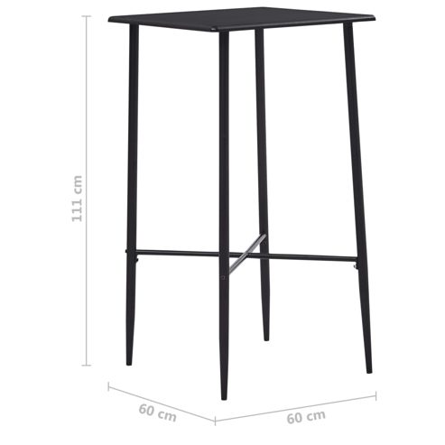 Dieses Bar-Set mit modernem und zeitgemäßem Design passt perfekt zu modernen Wohnungen, Gärten, Bars, Pubs oder Restaurants. Das saubere und zeitgemäße Design passt zu jeder Inneneinrichtung. Die Tischplatte besteht aus pflegeleichtem MDF. Das pulverbeschichtete Stahlgestell trägt zur Stabilität und Robustheit des Stehtisches bei. Die Barstühle haben einen ergonomisch geformten Sitz mit integrierter Rückenlehne in moderner, geschwungener Optik. Außerdem sind sie leicht zu montieren. Dieses Barset ist ideal, um ein Glas Wein an der Bartheke zu genießen, einen Happen am Küchentresen zu essen oder als zusätzliche Sitzgelegenheit, wenn Sie Gäste einladen. Die Lieferung umfasst einen Bartisch und 2 Barstühle. ** Bartisch : ** Farbe: Schwarz ** Material: MDF mit PVC-Beschichtung (Tischplatte) + pulverbeschichteter Stahl (Beine) ** Abmessungen: 60 x 60 x 111 cm (L x B x H) ** Barhocker : ** Farbe: Schwarz ** Material: Stoffbezug und pulverbeschichtete Metallbeine ** Abmessungen: 51 x 49 x 99 cm (B x T x H) ** Sitzbreite: 38,5 cm ** Sitztiefe: 32,5 cm ** Sitzhöhe vom Boden: 71 cm ** Mit Fußablage ** Lieferung beinhaltet : ** 1 x Bartisch ** 2 x Barstuhl ** Material: Polyester: 100% Maximal 110 kg pro Sitzplatz.