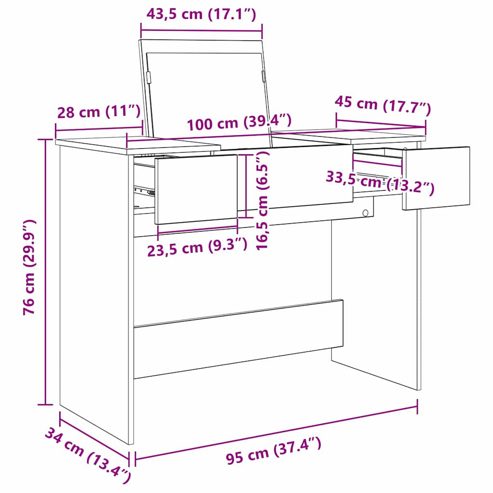 vidaXL Schminktisch Schwarze Eiche 100 x 45 x 76 cm Holzwerkstoff