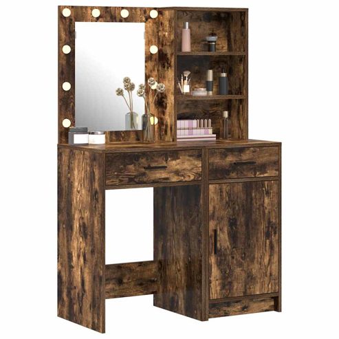 vidaXL Schminktisch Set 2 pcs Geräucherte Eiche 50 x 41 x 135 cm