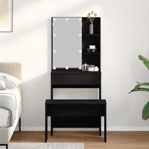 vidaXL Schminktisch Set Schwarze Eiche 60 x 40 x 140 cm Holzwerkstoff