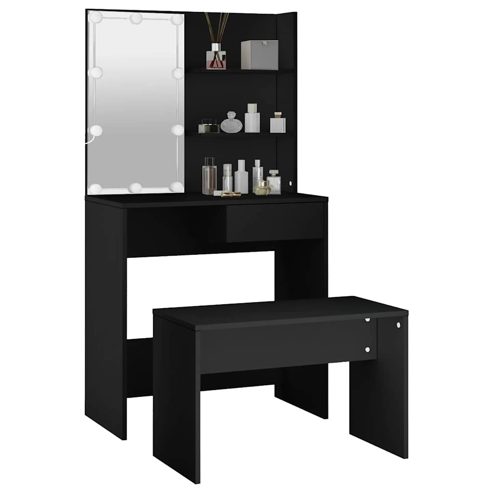 vidaXL Schminktisch-Set mit LED Schwarz Holzwerkstoff