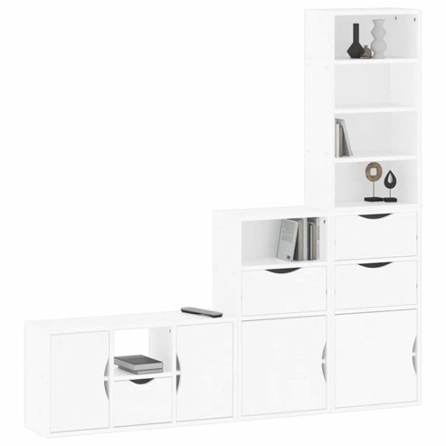 vidaXL 4-tlg. Wohnwand mit Stauraum ODDA Weiß Massivholz Kiefer