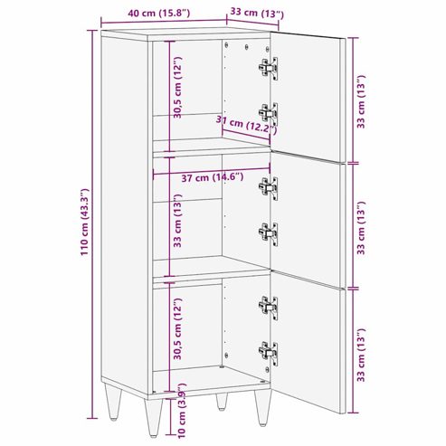 vidaXL Highboard mit Regal Schwarz 40 x 33 x 110 cm Massivholz Mango