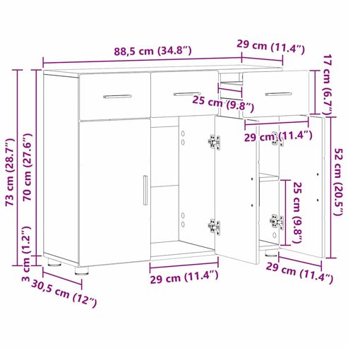 vidaXL Sideboard Sonoma-Eiche 88,5 x 30,5 x 73 cm Holzwerkstoff