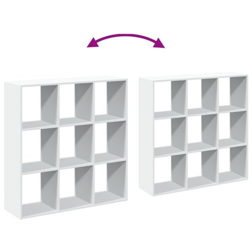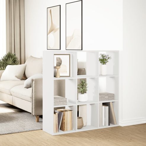 Das moderne Raumteiler-Bücherregal im geometrischen Design bietet viel Stauraum und eignet sich perfekt, um deinen Wohnraum stilvoll und aufgeräumt zu halten! Starkes und langlebiges Material: Holzwerkstoff ist ein langlebiges und robustes Material mit einer glatten Oberfläche, das gegen Feuchtigkeit, Verformung und Rissbildung beständig ist; dadurch ist es eine zuverlässige Wahl für die Herstellung von Möbeln.Reichlich Stauraum: Das Bücherregal verfügt über neun würfelförmige Fächer, in denen sich Bücher, Dekoartikel und andere Haushaltssachen ordentlich aufbewahren lassen.Flexible Aufstellungsmöglichkeiten: Das Regal kann sowohl in der Breite als auch in der Höhe auf den Boden gestellt werden und bietet so vielfältige Möglichkeiten der Raumgestaltung.Vielseitig einsetzbar: Das Regal kann auch als Raumteiler verwendet werden und passt problemlos zu jedem Einrichtungsstil. Es findet Platz im Wohnzimmer, um Dekoartikel zur Schau zu stellen, im Büro, um Bücher und Unterlagen zu verstauen, im Schlafzimmer, um Alltagssachen aufzubewahren, oder im Keller, um Haushaltssachen zu lagern.Pflegeleicht: Dank seiner glatten Oberfläche lässt sich das Raumtrenner-Bücherregal einfach mit einem feuchten Tuch reinigen und erfordert wenig Pflege. Achtung:Um ein Umkippen zu vermeiden, sollte dieses Produkt mit der mitgelieferten Wandhalterung gesichert werden. Gut zu wissen:Schrauben und Dübel für die Montage an der Wand sind nicht enthalten. Passendes Montagezubehör muss separat gekauft werden. Wenn du dir bezüglich der Montage nicht sicher bist, wende dich bitte an einen Fachmann. Bitte lies und befolge jeden Schritt in der Anleitung. ** Farbe: Weiß ** Material: Holzwerkstoff ** Gesamtabmessungen: 102 x 29 x 103,5 cm (B x T x H) ** Abmessungen pro Fach: 32 x 29 x 32,5 cm (B x T x H) ** Anzahl der Fächer: 9 ** Belastbarkeit (gesamt): 100 kg ** Belastbarkeit pro Fach: 10 kg ** Dient gleichzeitig als Raumtrenner ** Zusammenbau erforderlich: Ja Legal Documents: Weitere Informationen, wie Sie Ihre Möbel vor dem Umkippen schützen können, finden Sie hier