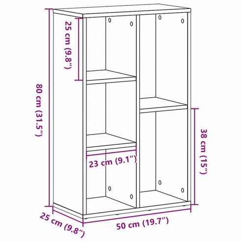 vidaXL Bücherregal Schwarz Eichen-Optik 50x25x80 cm Holzwerkstoff