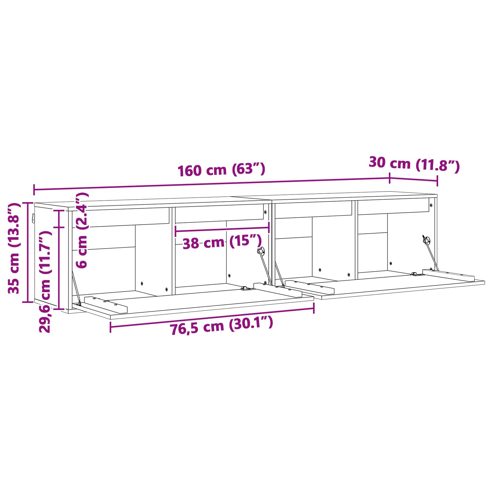 vidaXL Wandschrank mit Regal mit Tür 2 pcs Wachsbraun 80 x 30 x 35 cm