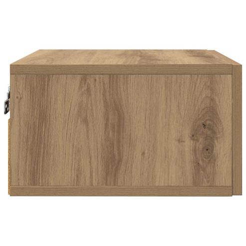 Der wandmontierte Nachttisch ist eine coole Aufbewahrungslösung, die super für Schlafzimmer eignet. Sein minimalistisches Design mit der schicken matten Oberfläche verbindet Stil und Funktion perfekt. Dieser platzsparende rechteckige Schrank wird direkt an der Wand angebracht und ist ideal für alle, die eine ordentliche Ästhetik suchen. Aus robustem Holzwerkstoff gemacht, bietet er viel Stauraum und sieht dabei klasse in einem modernen Umfeld aus, das zu verschiedenen Innendekoren passt. Bau aus Holzwerkstoff: Hergestellt aus strapazierfähigem Holzwerkstoff, ist dieser Schrank ziemlich stabil. Die glatte Oberfläche trägt zur Eleganz bei, und das hitzebeständige Material sorgt dafür, dass er lange hält. Wandmontierte Funktionalität: Perfekt für kleine Räume, hält das wandmontierte Design den Fußboden frei und sorgt für ein ordentliches Schlafzimmer. Montagezubehör hilft zwei Personen, ihn sicher zu installieren. Reichlich Stauraum: Der Schrank hat eine große Schublade, die allerlei persönliche Dinge aufnimmt und all deine Nachttischaufbewahrungsbedürfnisse erfüllt. Die Schublade aus Holzwerkstoff ist für den regelmäßigen Gebrauch konzipiert und funktioniert reibungslos. Stylischer moderner Stil: Mit seinen klaren Linien und der einfachen Form fügt sich dieser Schrank super in jede Schlafzimmerdekoration ein. Die matte Oberfläche verleiht ihm einen modernen Touch und macht ihn sowohl zu einer praktischen Aufbewahrungslösung als auch zu einem dekorativen Element. Einfache Pflege & Wartung: Um ihm ein frisches Aussehen zu verleihen, wisch ihn einfach mit einem feuchten Tuch ab, und befolge die einfachen Montageanleitungen. So bleibt der Schrank lange schick und funktioniert gut. ** Farbe: Artisan-eiche ** Material: Holzwerkstoff ** Gesamtabmessungen: 35 x 35 x 20 cm (L x B x H) ** Mit Schublade ** Montage erforderlich: Ja ** Lieferumfang: ** 1 x Wandmontierter Nachtschrank