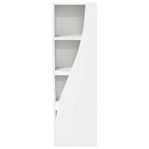 Dieser moderne Eckschrank verbindet stylisches Design mit praktischen Aufbewahrungsmöglichkeiten. Sein schlankes Design passt ideal in Zimmerecken und nutzt Platz optimal, während er einen zeitgenössischen Flair in deine Wohnung bringt. Der minimalistische Stil passt super in moderne Wohnzimmer und erfüllt alle Bedürfnisse der Aufbewahrung mit seinen vielseitigen Regalen und Fächern. Material aus Holzwerkstoff: Der Schrank ist aus robustem Holzwerkstoff gefertigt und bietet langfristige Lagerlösungen. Das Material ist widerstandsfähig gegen Abnutzung und ergänzt verschiedene Einrichtungsstile mit seiner neutralen Farbpalette. Platzsparende Eckregale: Diese Regale passen perfekt in Wohnzimmerecken, um den Raum optimal zu nutzen. Sie sind ideal für Bücher, Deko oder alltägliche Gegenstände, die griffbereit und dennoch unsichtbar sein sollen. Das durchdachte Design maximiert die Funktionalität ohne ansprechende Ästhetik zu verlieren. Funktionale Aufbewahrungsmöglichkeiten: Mit mehreren Fächern zum Organisieren und Lagern von Gegenständen ist der Schrank perfekt für alle, die Eleganz und Funktionalität schätzen. Ob du Dekoartikel ausstellen oder wichtige Dinge lagern möchtest, er erfüllt viele Bedürfnisse. Minimalistisches Finish: Das saubere, matte Finish sorgt für einen modernen Look in deinem Zuhause. Die nicht reflektierende Oberfläche fügt sich in jede Einrichtung ein und steigert die Ästhetik deines Wohnraums. Das schlichte Design bleibt über die Jahre hinweg aktuell und behält seinen Stil. Einfache Pflegehinweise: Halte den Schrank mit einem feuchten Tuch sauber und befestige ihn zur Sicherheit an der Wand, damit er nicht umkippt. Diese einfache Pflege macht ihn zu einem praktischen sowie ansprechenden Möbelstück. ** Farbe: Weiß ** Material: Holzwerkstoff ** Gesamtabmessungen: 32 x 32 x 102 cm (L x B x H) ** mit 4 Regalen ** Maße der einzelnen Regalböden: 29 x 28,5 x 1,5 cm (B x L x H) ** Anzahl Staufächer: 4 ** Montage erforderlich: Ja ** Lieferumfang: ** 1 x Eckschrank