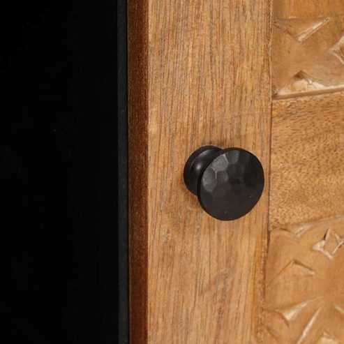 Dieses schicke Holz-Sideboard liegt genau im Bilde zwischen Stil und Funktionalität. Es ist ein echtes Highlight in jedem modernen Zuhause. Vor allem aus solidem Mangoholz gemacht, ist es super robust und perfekt, um deine Wohnzimmer-Utensilien unterzubringen. Mit seinem minimalistischen Look, klaren Linien und bündigen Türen verbreitet es ein modernes Gefühl, das zu jeder Deko passt. Die großen Fächer plus stabiler Rahmen garantieren nicht nur Langlebigkeit, sondern geben deinem Raum auch einen schnieken Touch. Egal, ob du Geschirr oder Deko verstauen willst, es bietet dir all das und sieht dabei auch noch gut aus! Materialien: Hergestellt aus solidem Mangoholz und Holzwerkstoff für eine robuste Struktur, die den täglichen Gebrauch ohne Probleme übersteht. Die warme Textur des Mangoholzes bringt echten Charakter ins Spiel und passt perfekt zum eleganten Finish des Holzwerkstoffs. Enthaltene Komponenten: Mit praktischen Knöpfen und bündigen Türen für einfachen Zugriff. Das Pfostenbein-Design bietet starken Halt und sieht dabei klassisch und dezent aus. Funktionen / Nutzung / Design: Dieses Sideboard bietet jede Menge Stauraum mit seinen großzügigen Fächern, was es leicht macht, alles ordentlich zu halten. Die rechteckige Form ist perfekt, um an Wänden oder in Ecken zu stehen, und macht es zu einem echten Blickfang, ohne zu aufdringlich zu sein. Empfohlene Anwendungen: Ideal für Wohnzimmer, dieses funktionale Design eignet sich super zur Aufbewahrung von Geschirr oder Deko und fügt sich nahtlos in moderne und minimalistische Interieurs ein. Es verwandelt leere Räume in schicke, stylische Bereiche. Pflege & Wartung: Du brauchst zwei Personen und einen Schraubendreher für die Montage. Danach hältst du es einfach in Schuss, indem du es mit einem trockenen Tuch abwischst. Vermeide aggressive Chemikalien, damit es länger hält und dieses schöne Stück Teil deiner Wohnkultur bleibt. ** Farbe: Hellbraun ** Material: Massives mango holz und hochleistungswerkstoff ** Gesamtabmessungen: 33.5 x 90 x 75 cm (B x L x H) ** Mit 2 türen ** Versammlung erforderlich: Ja ** Lieferung: ** 1 x Sideboard