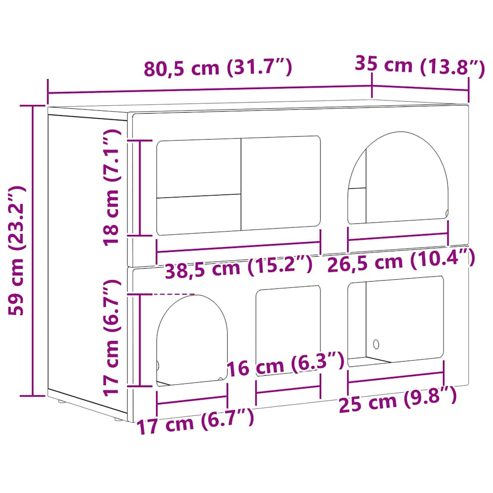 Dieses schicke moderne Sideboard ist eine elegante Ergänzung für jeden Ess- oder Wohnraum. Es bietet Praktikabilität in einem coolen, zeitgemäßen Design. Seine rechteckige Form macht es super vielseitig und passt perfekt zu modernen Möbeln. Mit seinen klaren Linien und dem minimalistischen Look ist dieses Sideboard eine funktionale und ansprechende Aufbewahrungslösung. Ideal für Hausbesitzer, die sowohl Funktionalität als auch Stil suchen. Es ist so konzipiert, dass es den Anforderungen modernen Wohnens gerecht wird und bietet viel Stauraum, ohne die visuelle Anziehungskraft zu verlieren. Materialien: Dieses moderne Sideboard aus Holzwerkstoff sieht klasse aus und passt gut zu verschiedenen Einrichtungsstilen. Das Material wurde wegen seiner ansprechenden Optik und Langlebigkeit ausgesucht und sorgt dafür, dass das Sideboard auch bei täglichem Gebrauch gut aussieht und einen bleibenden Eindruck hinterlässt. Inklusive Komponenten: Das Sideboard hat mehrere Regale, die die Organisation verschiedener Dinge erleichtern. Diese Regale sind super vielseitig für Geschirr, Bücher oder Deko. So hat man alles im Blick und kann leicht darauf zugreifen. Funktionen / Anwendung / Design: Das Sideboard ist für viele Einsatzzwecke geeignet - ob als Buffet im Esszimmer oder als Konsole im Wohnzimmer. Die robuste Bauweise hält einiges aus und sorgt für viel Stauraum und Präsentationsfläche. Es kombiniert Einfachheit mit Funktionalität, passend für das moderne Leben. Empfohlene Verwendung: Am besten macht sich das Sideboard in Ess- und Wohnräumen. Es gibt deinem Zuhause einen eleganten Touch und lässt sich harmonisch mit anderen Möbelstücken kombinieren. Man kann es auch in Fluren oder Eingangsbereichen nutzen, was Funktionalität und Stil in jeden Raum bringt. Pflege und Wartung: Zur Pflege der Oberfläche sollten keine aggressiven Chemikalien oder Scheuermittel genutzt werden. Es ist am besten, die Flächen einfach mit einem feuchten Tuch abzuwischen und übermäßiges Reiben zu vermeiden, damit das Sideboard lange gut aussieht. ** Farbe: Weiß ** Material: Holzwerkstoff ** Gesamtabmessungen: 80,5 x 35 x 59 cm (L x B x H) ** Montage erforderlich: Ja ** Lieferumfang: ** 1 x Sideboard