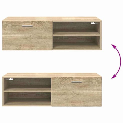 Dieser elegante und moderne Schrank ist darauf ausgelegt, deinen Wohnraum mit klaren Linien und cleverer Funktionalität aufzuwerten. Aus Holzwerkstoff gefertigt, bringt er eine moderne Note, die sich mühelos in verschiedene Stile einfügt. Mit viel Stauraum ist er eine praktische Wahl, um alles ordentlich zu halten – ideal für jeden, der stilvolle Aufbewahrung für zu Hause sucht. Holzwerkstoff Konstruktion: Dieser Schrank ist aus hochwertigem Holzwerkstoff, der für seine Haltbarkeit und Vielseitigkeit bekannt ist. Dieses Material ist langlebig und strahlt eine moderne Atmosphäre aus, die sich gut in jede Einrichtung einfügt. Viel Stauraum: Mit seinen großen Fächern ist dieser Schrank perfekt für das Verstauen von verschiedenen Gegenständen und bringt Ordnung in dein Zuhause. Ideal für Deko und Alltagsgegenstände, bietet er genug Platz, um alles organisiert zu halten. Schlankes modernes Design: Das minimalistische Design mit klaren Linien passt perfekt in die moderne Ästhetik. Es hebt das Aussehen jedes Raums an und wird ein echter Hingucker in deiner Einrichtung. Funktional & Praktisch: Dieser Schrank ist für Innenräume konzipiert und spart Platz, während er nützlichen Stauraum bietet. Er ist die perfekte Wahl für Haushalte, die Praktikabilität mit stilvollem Design vereinen möchten. Einfache Pflege: Mit minimalem Pflegeaufwand ist dieser Schrank einfach zu handhaben. Ein schnelles Abstauben mit einem trockenen Tuch genügt, um ihn chic und klassisch zu halten. ** Farbe: Sonoma-eiche ** Material: Holzwerkstoff ** Gesamtabmessungen: 100.5 x 39 x 30 cm (L x B x H) ** Reichlich Stauraum ** Langlebig ** Mit Schublade ** Mit regal ** Rahmenmaterial: Holzwerkstoff ** Innen- / außenbereich: Nur für drinnen ** Lieferumfang: ** 1 x TV Schrank ** Anzahl artikel: 1 ** Montage erforderlich: Ja