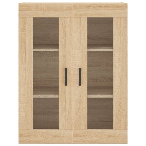 Mit seinem eleganten Design ist dieser Wandschrank eine zeitlose Bereicherung für deine Inneneinrichtung. Langlebiges Material: Holzwerkstoff ist ein Material von außergewöhnlicher Qualität mit glatter Oberfläche, das sich durch Festigkeit, Stabilität und Feuchtigkeitsbeständigkeit auszeichnet. Aus Holzwerkstoff gefertigt, ist dieser Schrank robust und langlebig. Viel Stauraum: Der Hängeschrank bietet viel Platz, um verschiedene Alltagssachen gut organisiert und in Reichweite aufzubewahren.Wandmontage: Der Hängeschrank nimmt keine Bodenfläche ein. Du kannst ihn einfach an der Wand montieren.Praktisches Design: Deine Sachen sind hinter den Glastüren sichtbar und gleichzeitig vor Staub geschützt. Außerdem lässt sich der Beistellschrank dank der Griffe leicht öffnen.Vielseitiger Schrank: Du kannst diesen Schwebeschrank auch auf ein Sideboard stellen, um ein Highboard zu bilden und so zusätzlichen Stauraum zu schaffen. Durch sein schlichtes Design eignet er sich für dein Wohnzimmer, Schlafzimmer, Arbeitszimmer und jeden anderen Wohnbereich. Gut zu wissen:Schrauben und Dübel sind für die Befestigung an der Wand nicht im Lieferumfang enthalten. Wir empfehlen, speziell für deine Wände geeignete Schrauben und Dübel zu finden und zu verwenden. Im Zweifelsfall wende dich an einen Fachmann. Bitte lese und befolge jeden Schritt der Anweisungen. ** Farbe: Sonoma-Eiche ** Material: Holzwerkstoff, Glas ** Abmessungen: 69,5 x 34 x 90 cm (B x T x H) ** Zusammenbau erforderlich: Ja