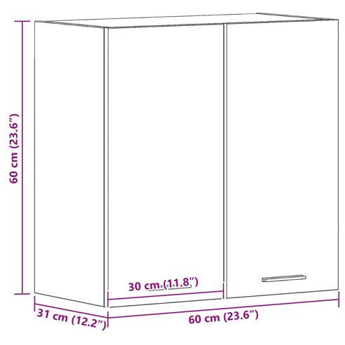 Dieser schicke Küchenschrank ist perfekt für alle, die Stil und Praktikabilität in ihrer Küche wollen. Mit seinem modernen Look und den klaren Linien fügt er sich gut in verschiedene Küchenstile ein. Die glatte Oberfläche sorgt dafür, dass er sauber aussieht und die Atmosphäre des Raums hebt. Ideal für Hausbesitzer, die schnellen Zugriff auf ihren Stauraum wollen, ohne auf Style zu verzichten. Materialien: Dieser Schrank aus Holzwerkstoff verbindet Haltbarkeit mit stylischem Design. Er ist robust genug für den täglichen Einsatz in der Küche und behält dabei seinen modernen Look. Enthaltene Teile: Es gibt keine speziellen Extras, aber er bietet soliden Stauraum. Viel Stauraum: Der Schrank hat viel Platz für all deine Küchenutensilien und sorgt dafür, dass alles ordentlich und einfach zu nutzen ist. Moderner Stil: Mit seinem einfachen Design gibt er einen klaren Look. Die klaren Linien passen gut zu aktuellen Stilen und bringen einen schönen Akzent in jede Küche. Pflege & Wartung: Um ihn gut aussehen zu lassen, vermeide scharfe Reinigungsmittel. Ein schnelles Abwischen mit einem trockenen Tuch reicht, um ihn für den täglichen Gebrauch in Topform zu halten. ** Farbe: Schwarze eiche ** Material: Holzwerkstoff ** Beenden: Matt ** Gesamtabmessungen: 60 x 31 x 60 cm (L x B x H) ** Gewicht: 13.6 kg ** Mit 1 regal ** Mit 2 türen ** Innen- / außenbereich: Nur für drinnen ** Lieferung: ** 1 x Hängeschrank ** Anzahl der elemente: 1 ** Versammlung erforderlich: Ja ** Montage enthalten: Wand-/deckenbefestigungen - z b spezielle schrauben oder dübel sind nicht enthalten