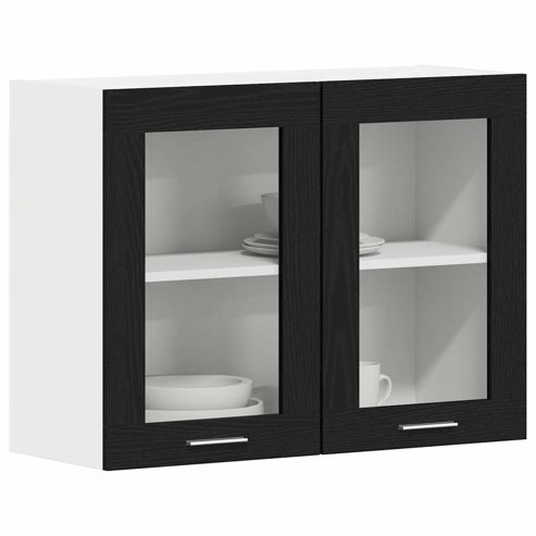 vidaXL Hängender Glaskasten mit Regal Schwarze Eiche 80 x 31 x 60 cm