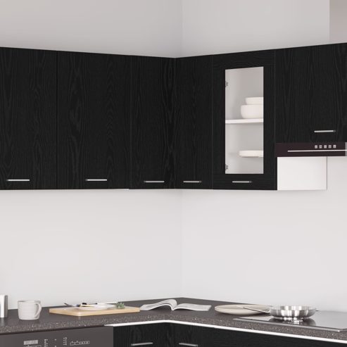 Dieser schicke Küchenschrank ist perfekt für alle, die Stil und Praktikabilität in ihrer Küche wollen. Mit seinem modernen Look und den klaren Linien fügt er sich gut in verschiedene Küchenstile ein. Die glatte Oberfläche sorgt dafür, dass er sauber aussieht und die Atmosphäre des Raums hebt. Ideal für Hausbesitzer, die schnellen Zugriff auf ihren Stauraum wollen, ohne auf Style zu verzichten. Materialien: Dieser Schrank aus Holzwerkstoff verbindet Haltbarkeit mit stylischem Design. Er ist robust genug für den täglichen Einsatz in der Küche und behält dabei seinen modernen Look. Enthaltene Teile: Es gibt keine speziellen Extras, aber er bietet soliden Stauraum. Viel Stauraum: Der Schrank hat viel Platz für all deine Küchenutensilien und sorgt dafür, dass alles ordentlich und einfach zu nutzen ist. Moderner Stil: Mit seinem einfachen Design gibt er einen klaren Look. Die klaren Linien passen gut zu aktuellen Stilen und bringen einen schönen Akzent in jede Küche. Pflege & Wartung: Um ihn gut aussehen zu lassen, vermeide scharfe Reinigungsmittel. Ein schnelles Abwischen mit einem trockenen Tuch reicht, um ihn für den täglichen Gebrauch in Topform zu halten. ** Farbe: Schwarze eiche ** Material: Holzwerkstoff ** Beenden: Matt ** Gesamtabmessungen: 57 x 57 x 60 cm (L x B x H) ** Gewicht: 18.7 kg ** Mit 1 regal ** Mit 2 türen ** Innen- / außenbereich: Nur für drinnen ** Lieferung: ** 1 x Hängeschrank in der Ecke ** Anzahl der elemente: 1 ** Versammlung erforderlich: Ja ** Montage enthalten: Wand-/deckenbefestigungen - z b spezielle schrauben oder dübel sind nicht enthalten