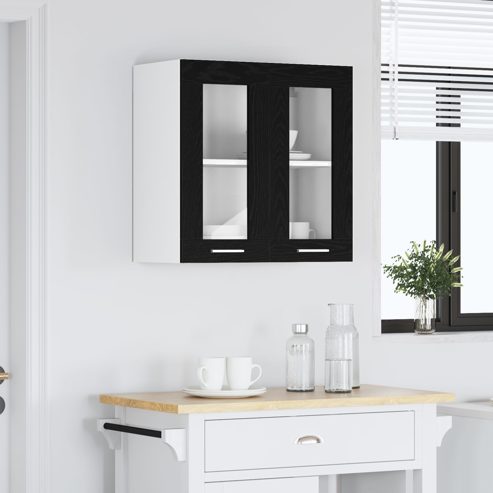 vidaXL Hängender Glaskasten mit Regal Schwarze Eiche 60 x 31 x 60 cm