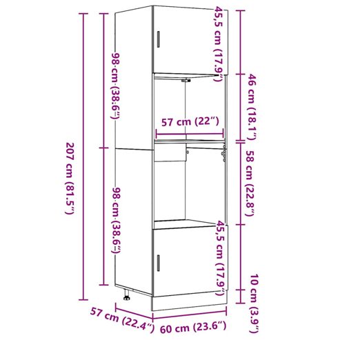 Dieser schicke Küchenschrank ist perfekt für alle, die Stil und Praktikabilität in ihrer Küche wollen. Mit seinem modernen Look und den klaren Linien fügt er sich gut in verschiedene Küchenstile ein. Die glatte Oberfläche sorgt dafür, dass er sauber aussieht und die Atmosphäre des Raums hebt. Ideal für Hausbesitzer, die schnellen Zugriff auf ihren Stauraum wollen, ohne auf Style zu verzichten. Materialien: Dieser Schrank aus Holzwerkstoff verbindet Haltbarkeit mit stylischem Design. Er ist robust genug für den täglichen Einsatz in der Küche und behält dabei seinen modernen Look. Enthaltene Teile: Es gibt keine speziellen Extras, aber er bietet soliden Stauraum. Viel Stauraum: Der Schrank hat viel Platz für all deine Küchenutensilien und sorgt dafür, dass alles ordentlich und einfach zu nutzen ist. Moderner Stil: Mit seinem einfachen Design gibt er einen klaren Look. Die klaren Linien passen gut zu aktuellen Stilen und bringen einen schönen Akzent in jede Küche. Pflege & Wartung: Um ihn gut aussehen zu lassen, vermeide scharfe Reinigungsmittel. Ein schnelles Abwischen mit einem trockenen Tuch reicht, um ihn für den täglichen Gebrauch in Topform zu halten. ** Farbe: Schwarze eiche ** Material: Holzwerkstoff ** Beenden: Matt ** Gesamtabmessungen: 60 x 57 x 207 cm (L x B x H) ** Gewicht: 25.5 kg ** Mit 1 regal ** Mit 2 türen ** Innen- / außenbereich: Nur für drinnen ** Lieferung: ** 1 x Mikrowellenregal ** Anzahl der elemente: 1 ** Versammlung erforderlich: Ja