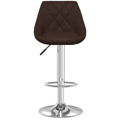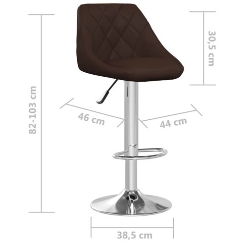 Dieser trendige Barhocker passt mit seinem eleganten und modernen Stil zu jedem Raum, sei es Wohnungen, Büros, Bars oder Cafes. Mit pflegeleichtem Kunstleder bezogen, sorgt dieser Barstuhl für optimalen Sitzkomfort. Das Gestell aus verchromtem Stahl bietet hohe Stabilität. Darüber hinaus lässt sich der Hocker dank der Gasdruckfeder in der Höhe verstellen und ist daher eine perfekte Ergänzung zu jeder Bar bzw. jedem Essbereich. Er kann auch um 360 Grad gedreht werden, was eine große Flexibilität gewährleistet. ** Farbe: Braun ** Material: Kunstleder (60% Polyurethan, 30% Polyester, 10% Baumwolle), verchromter Stahl ** Abmessungen: 44 x 46 x (82-103) cm (B x T x H) ** Gesamthöhe der Rückenlehne: 30,5 cm ** Sitztiefe: 38,5 cm ** Durchmesser des Standfußes: 38,5 cm ** Um 360 Grad drehbar ** Mit Gasdruckfeder ** Höhenverstellbar: Ja ** Zusammenbau erforderlich: Ja ** Lieferung enthält: ** 2 x Barhocker Maximal 110 kg pro Sitzplatz.
