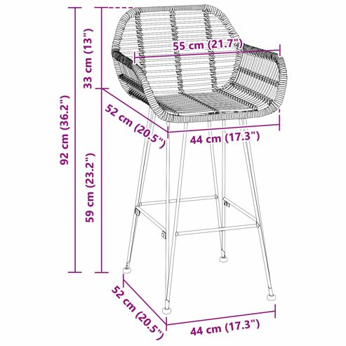 vidaXL Barstuhl 2 pcs Natur 55 x 52 x 92 cm Rattan und Eisen